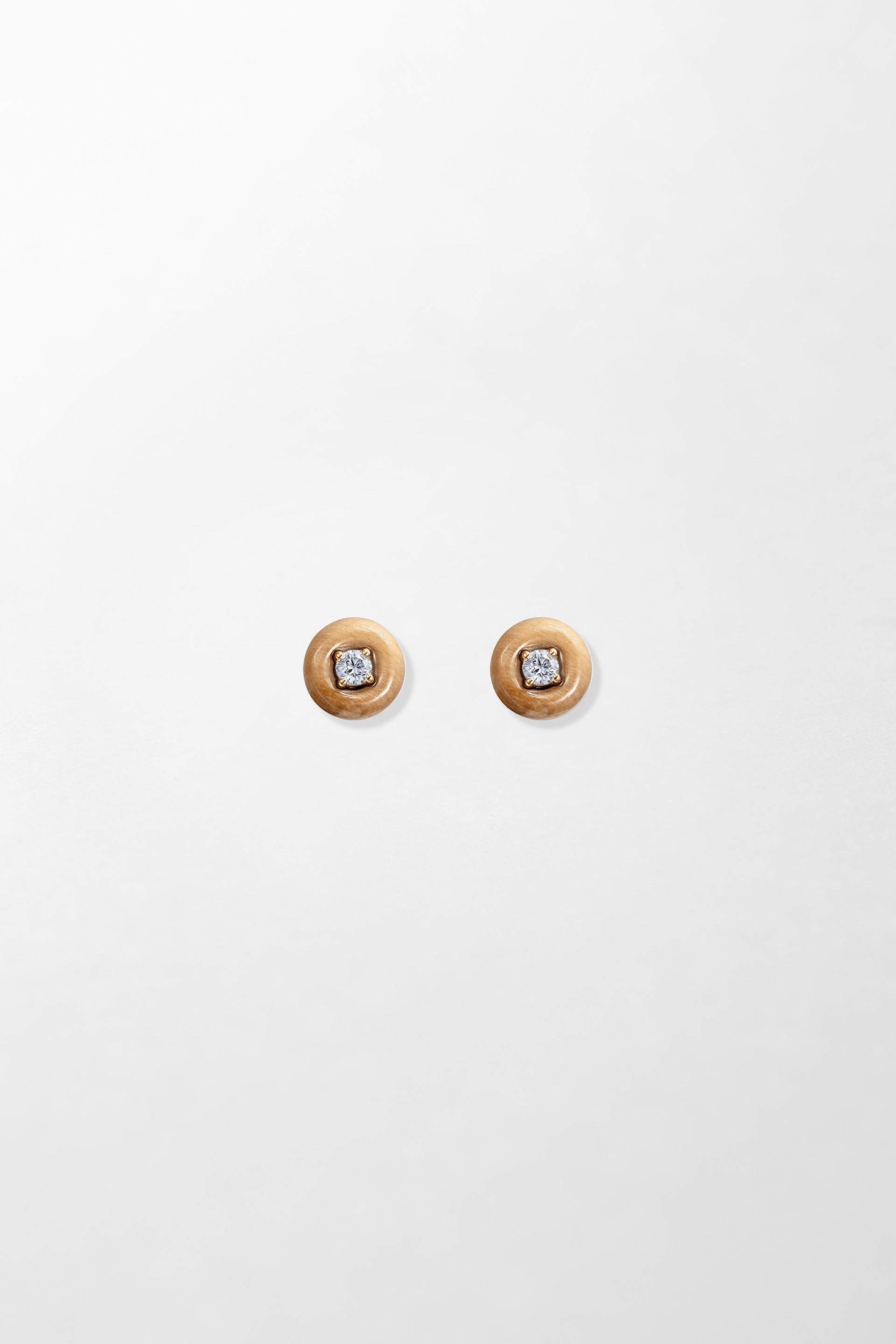 Crafted in 18k yellow gold and set with 0.20 carats of brilliant cut diamonds with hand-carved petrified wood.