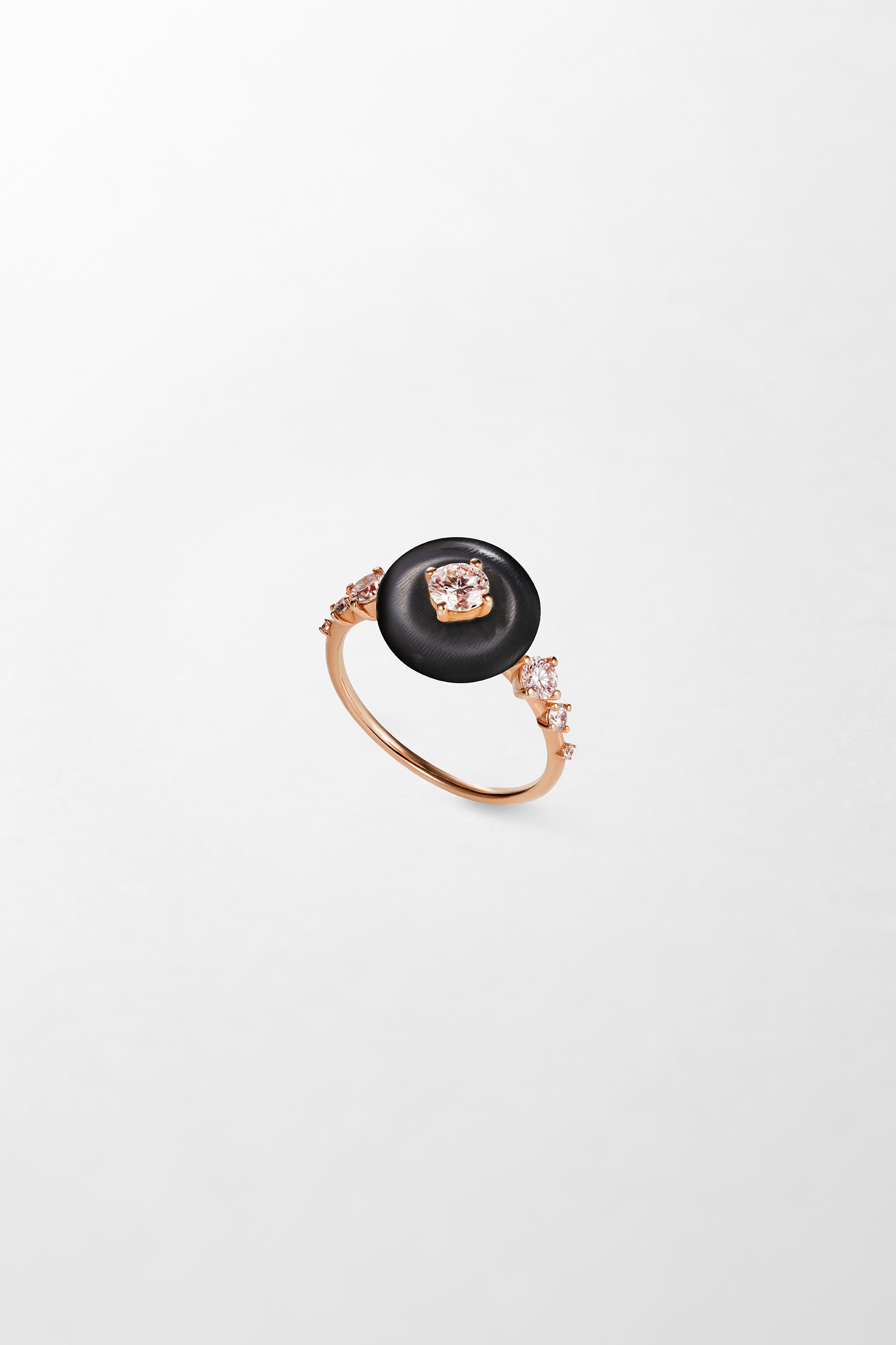 Crafted in 18k rose gold and set with a 0.52 carat brilliant cut brown diamond and hand-carved horn.