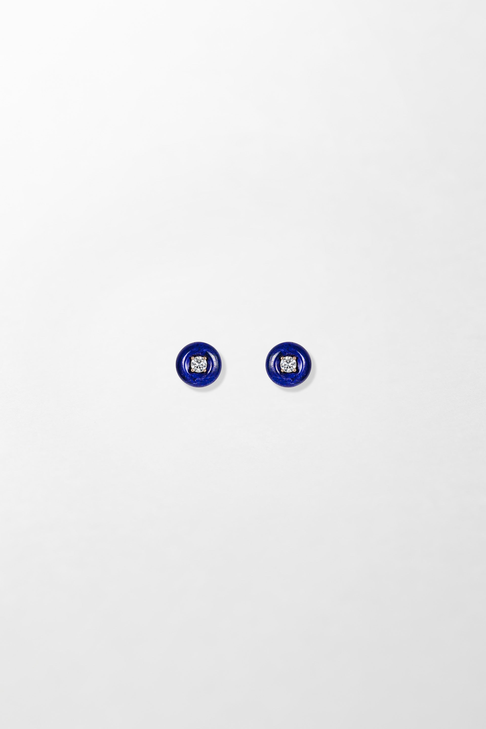 Crafted in 18k rose gold and set with 0.10 carats of brilliant cut diamonds with hand-carved lapis lazuli.