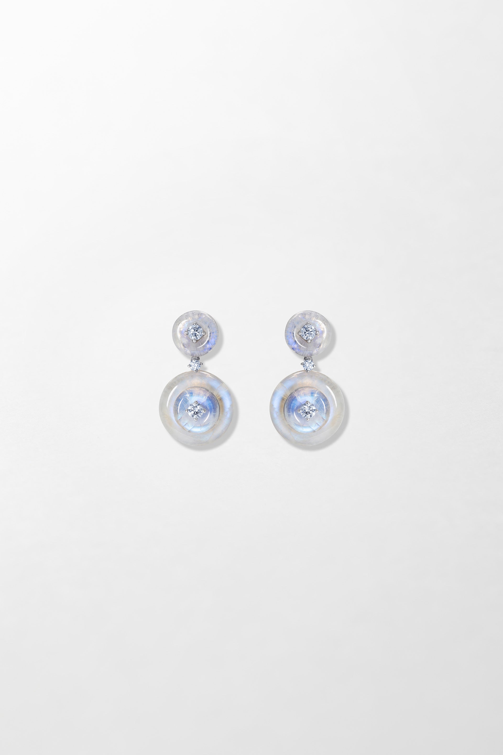 Crafted in 18k white gold and set with 0.40 carats of brilliant cut diamonds and hand carved moonstone.