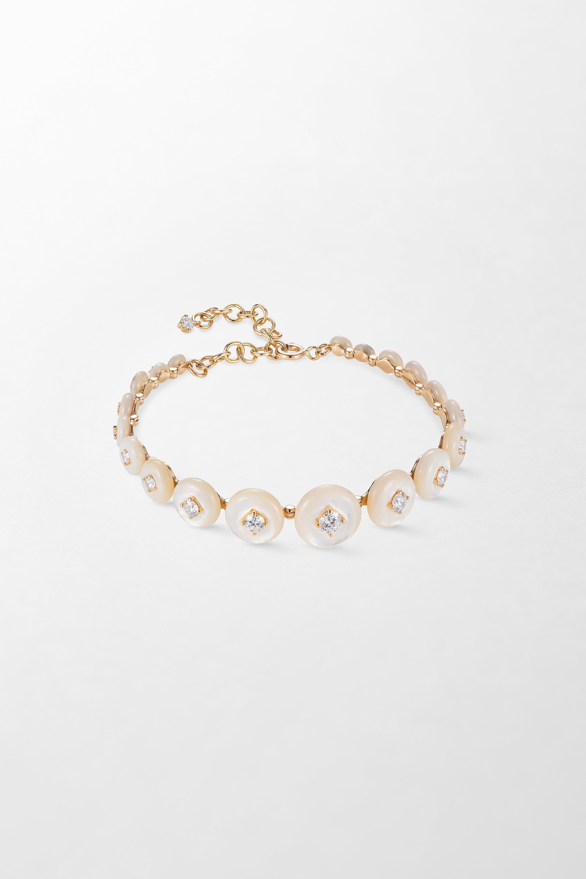 Crafted in 18k yellow gold and set with 1.50 carats of brilliant cut diamonds with hand-carved mother of pearl.