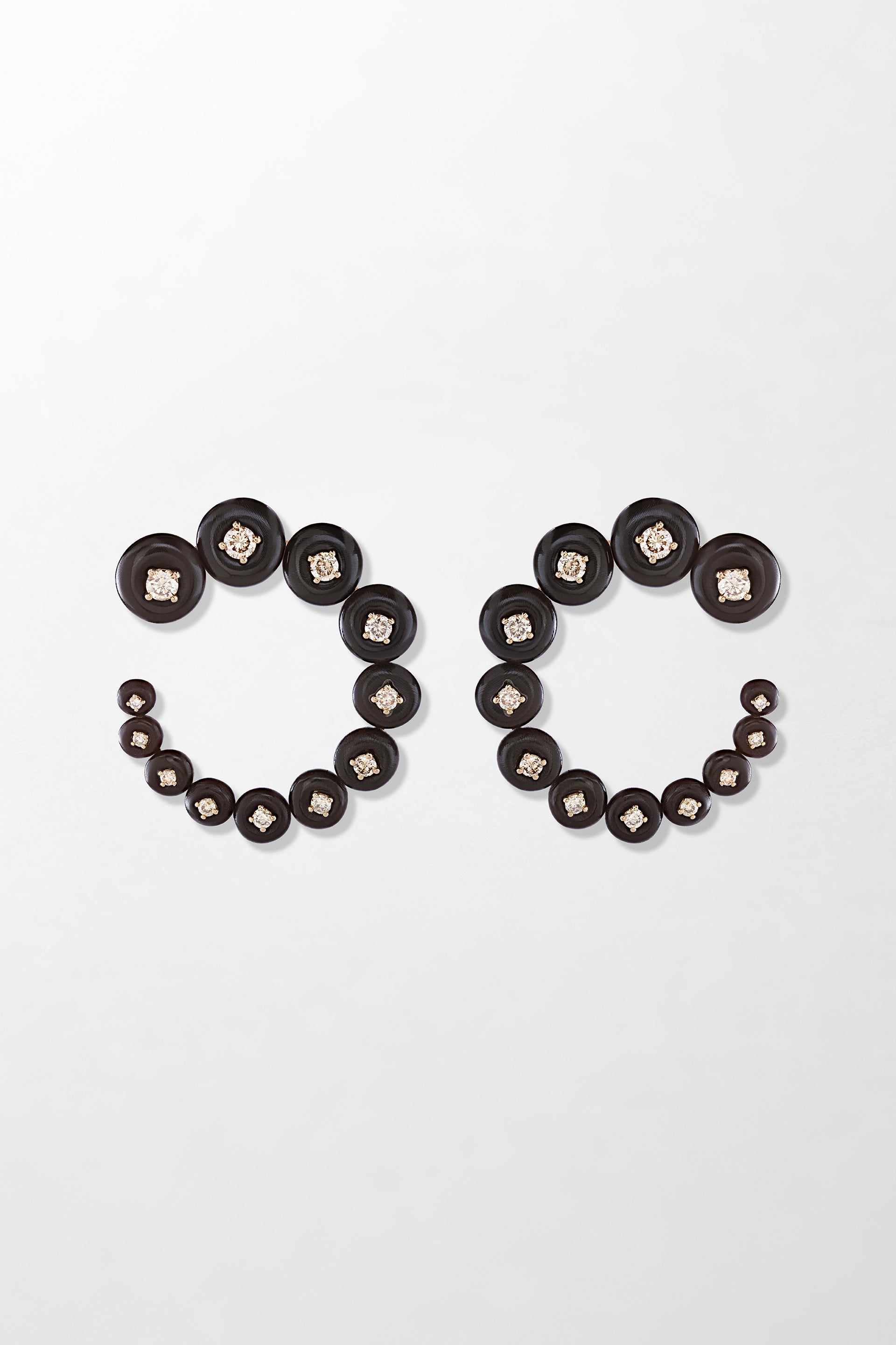 Crafted in 18k rose gold and set with 1.43 carats of brown cut diamonds with hand-carved horn.