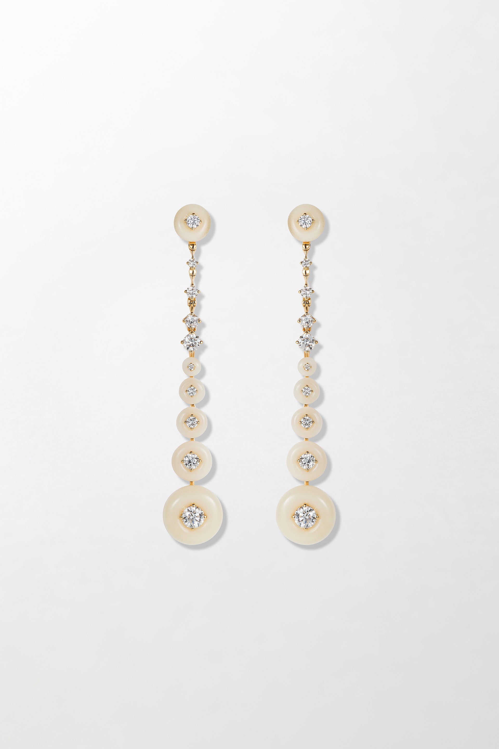 Crafted in 18k yellow gold and set with 1.52 carats of brilliant cut diamonds with hand-carved tagua seed.