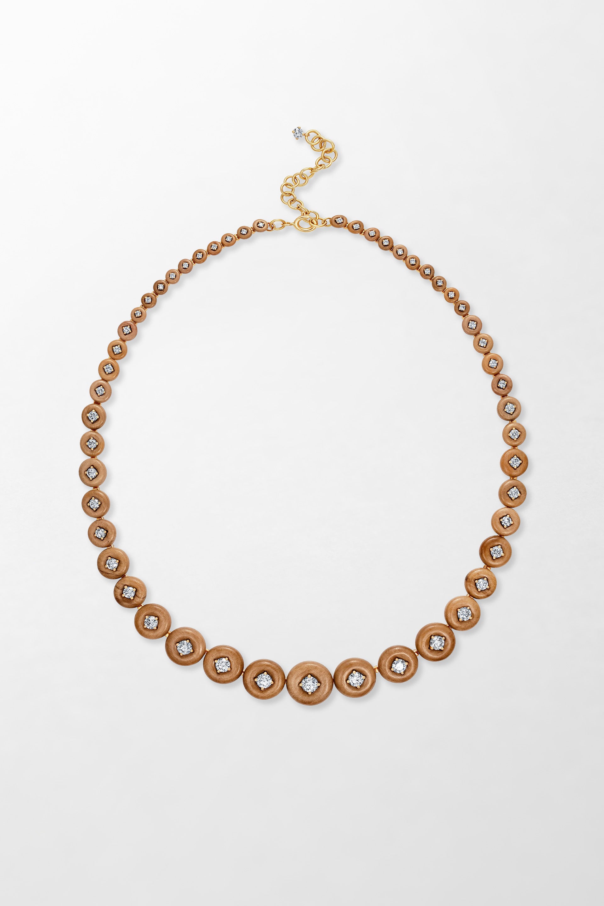 Crafted in 18k yellow gold and set with 4.00 carats of brilliant cut diamonds with hand-carved petrified wood.
