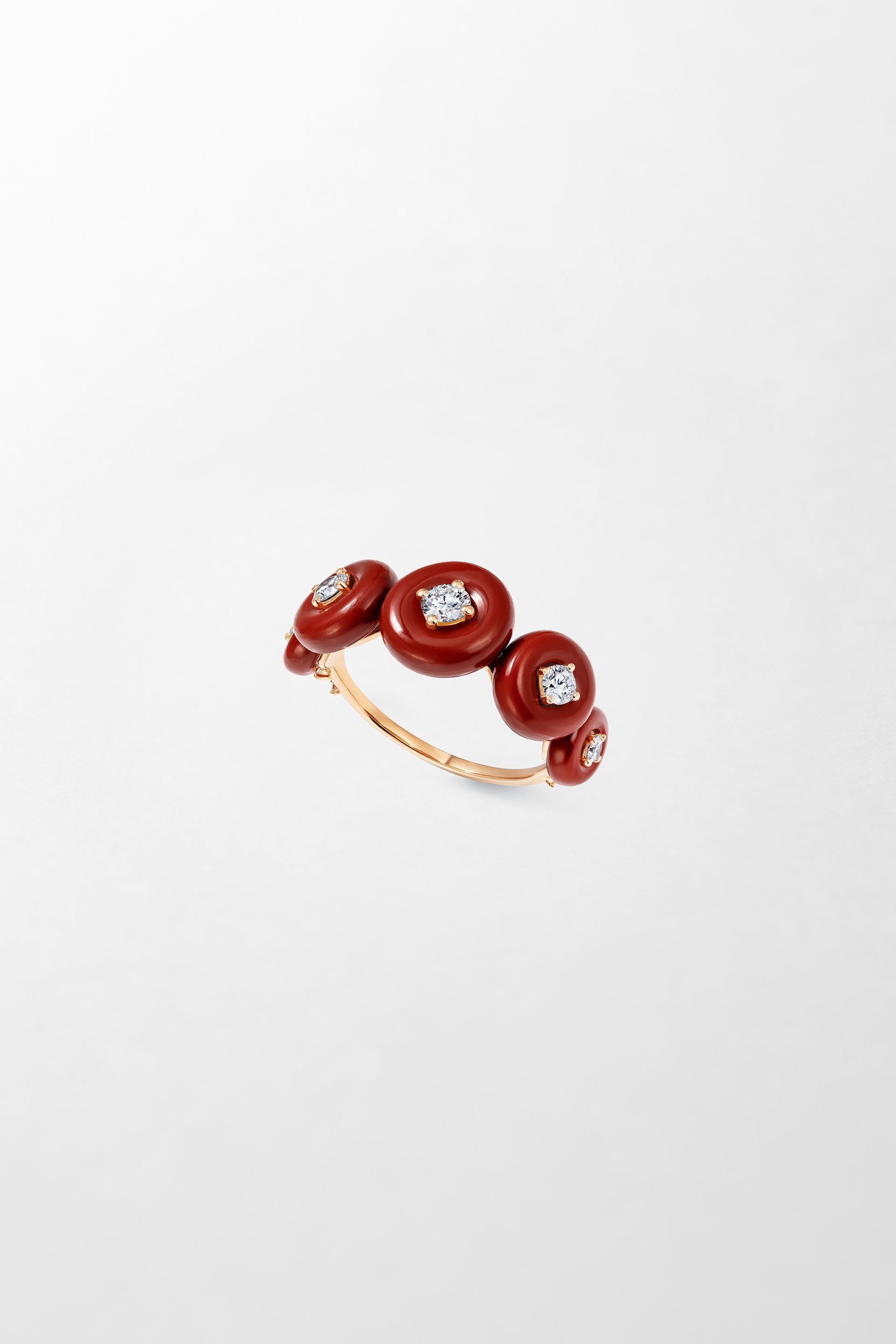 Crafted in 18k rose gold and set with 0.40 carat brilliant cut diamond and hand-carved jasper.