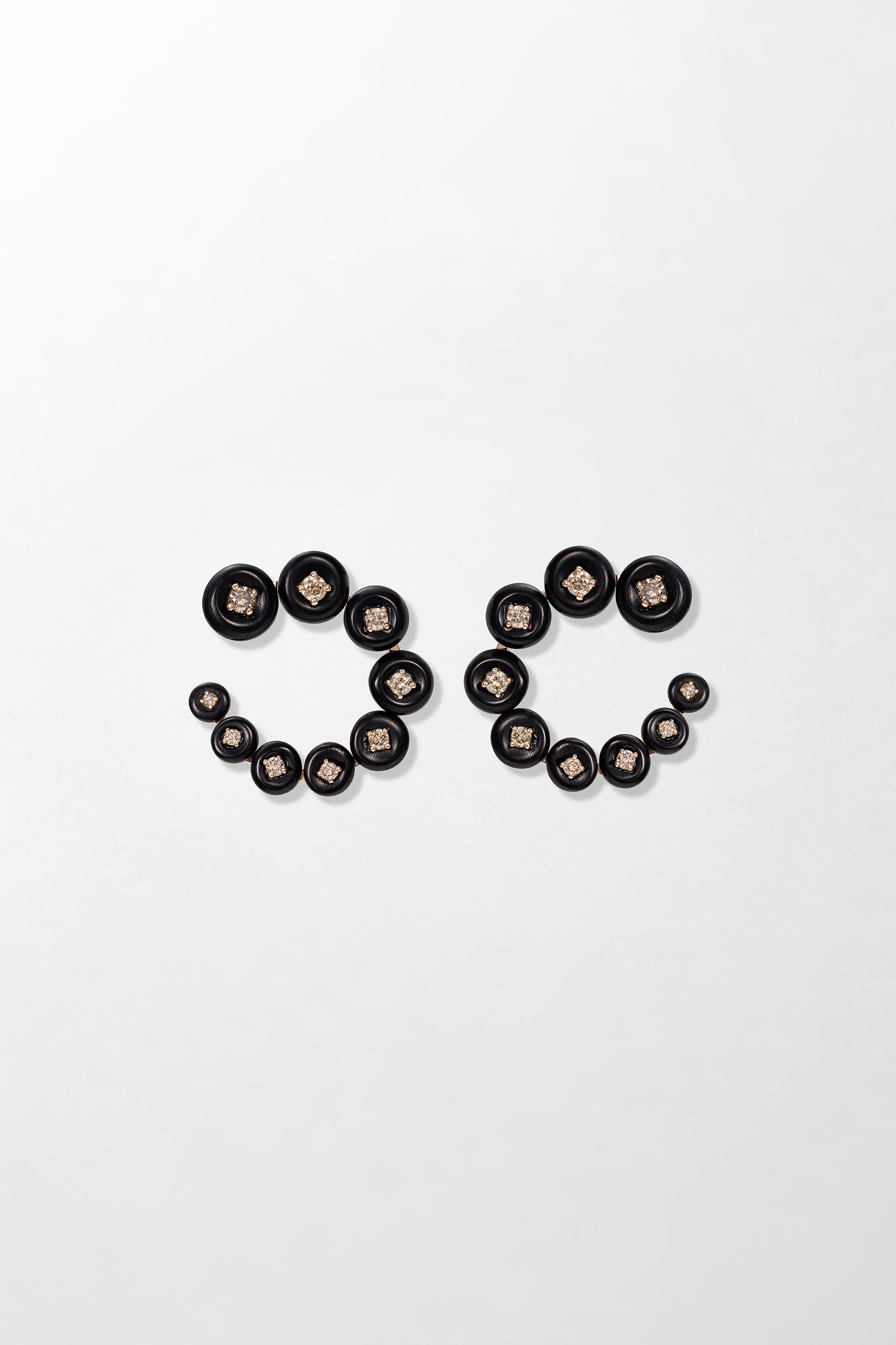 Crafted in 18k rose gold and set with 0.48 carats of brilliant cut brown diamonds with hand-carved horn.