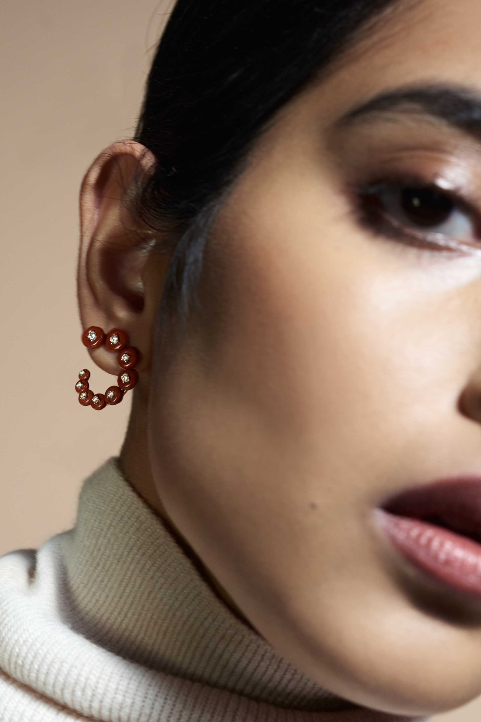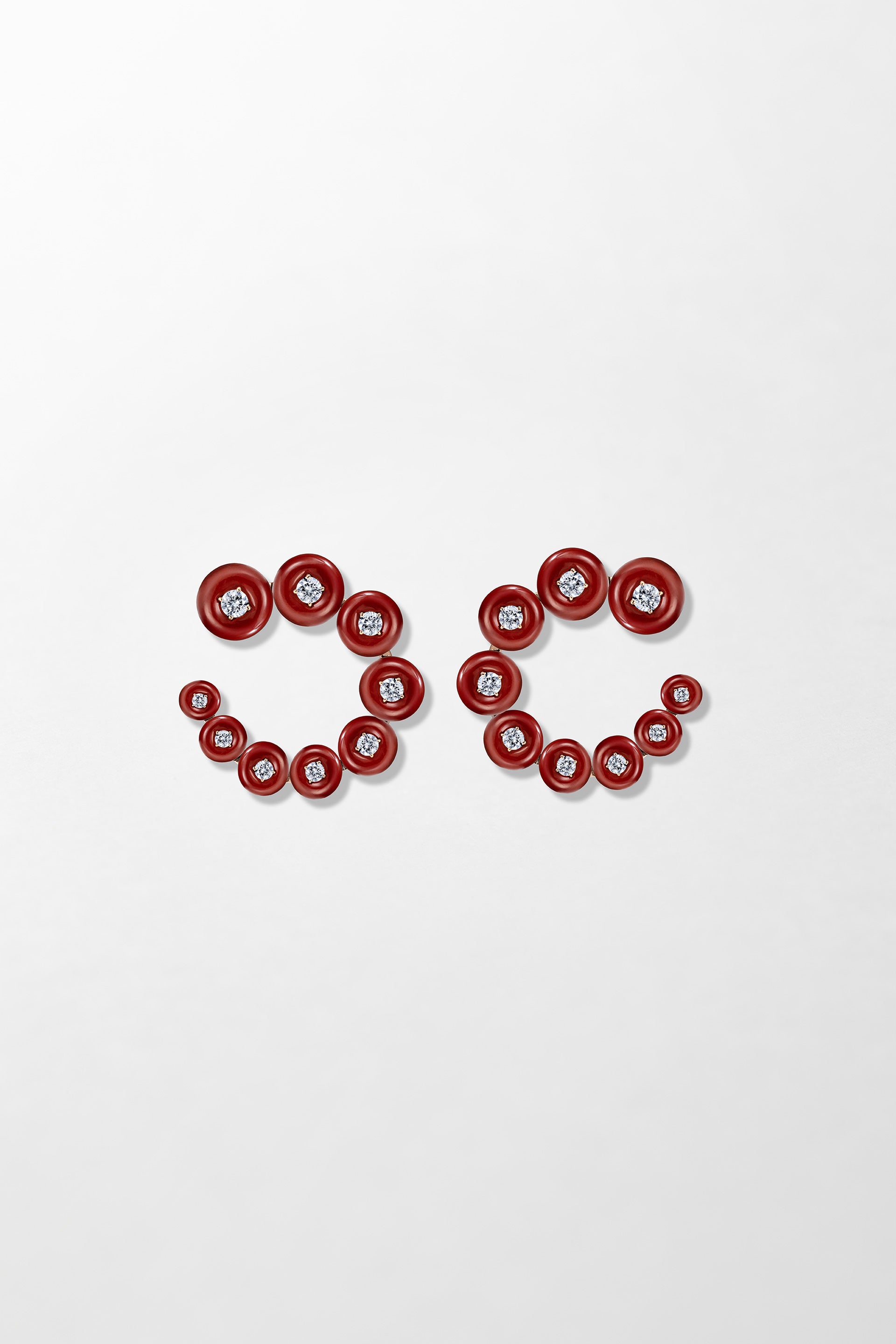 Crafted in 18k rose gold and set with 0.48 carats of brilliant cut diamonds with hand-carved jasper.