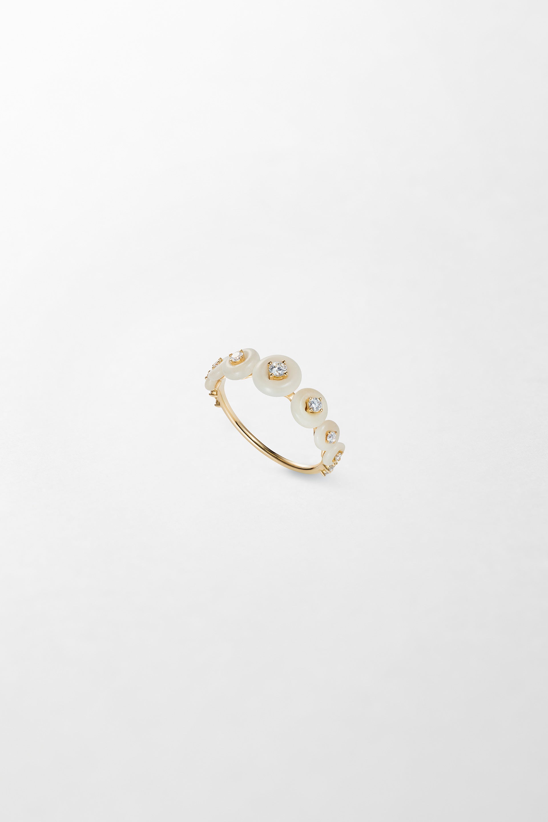 Crafted in 18k yellow gold and set with a 0.20 carats of brilliant cut diamond and hand-carved tagua seed.
