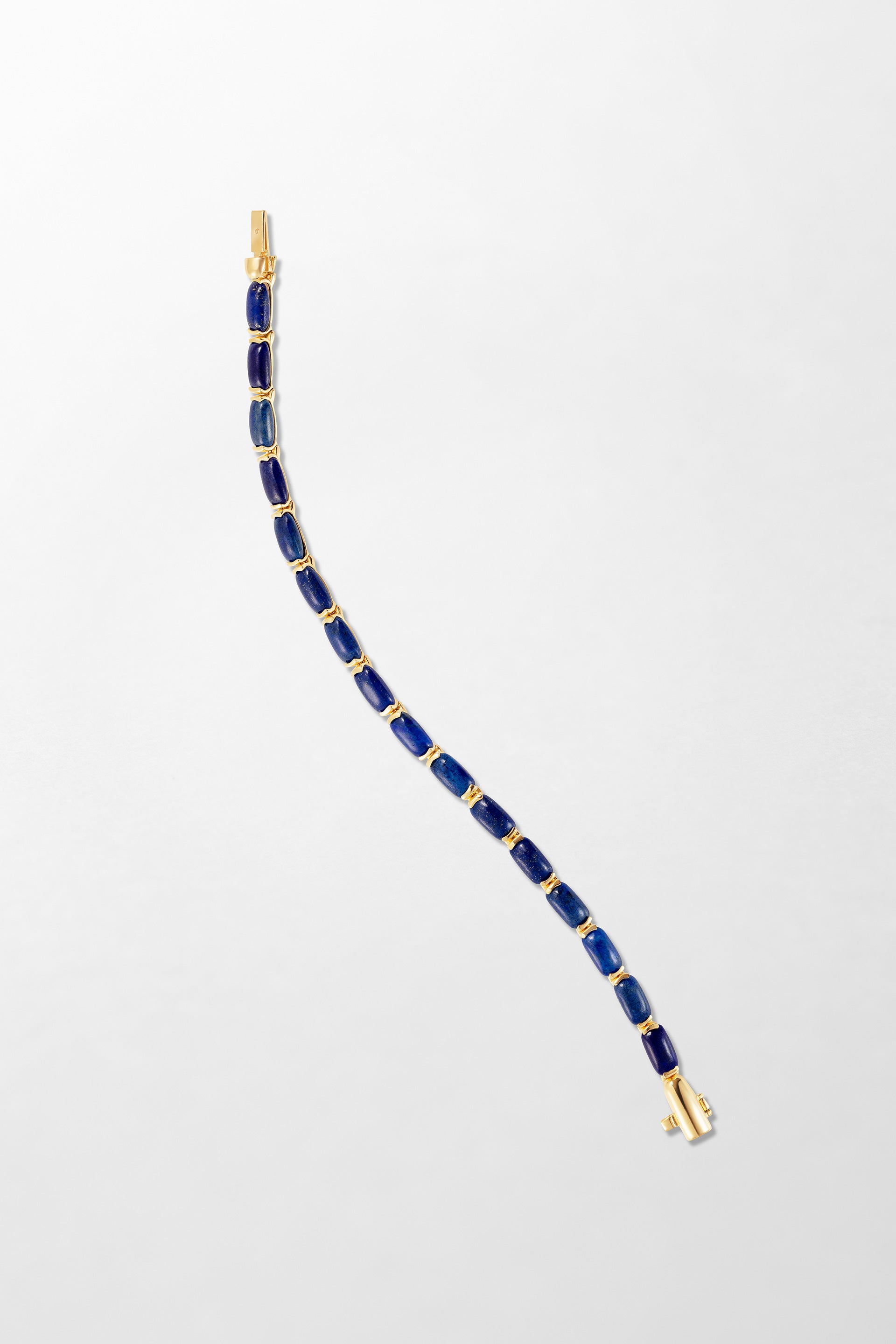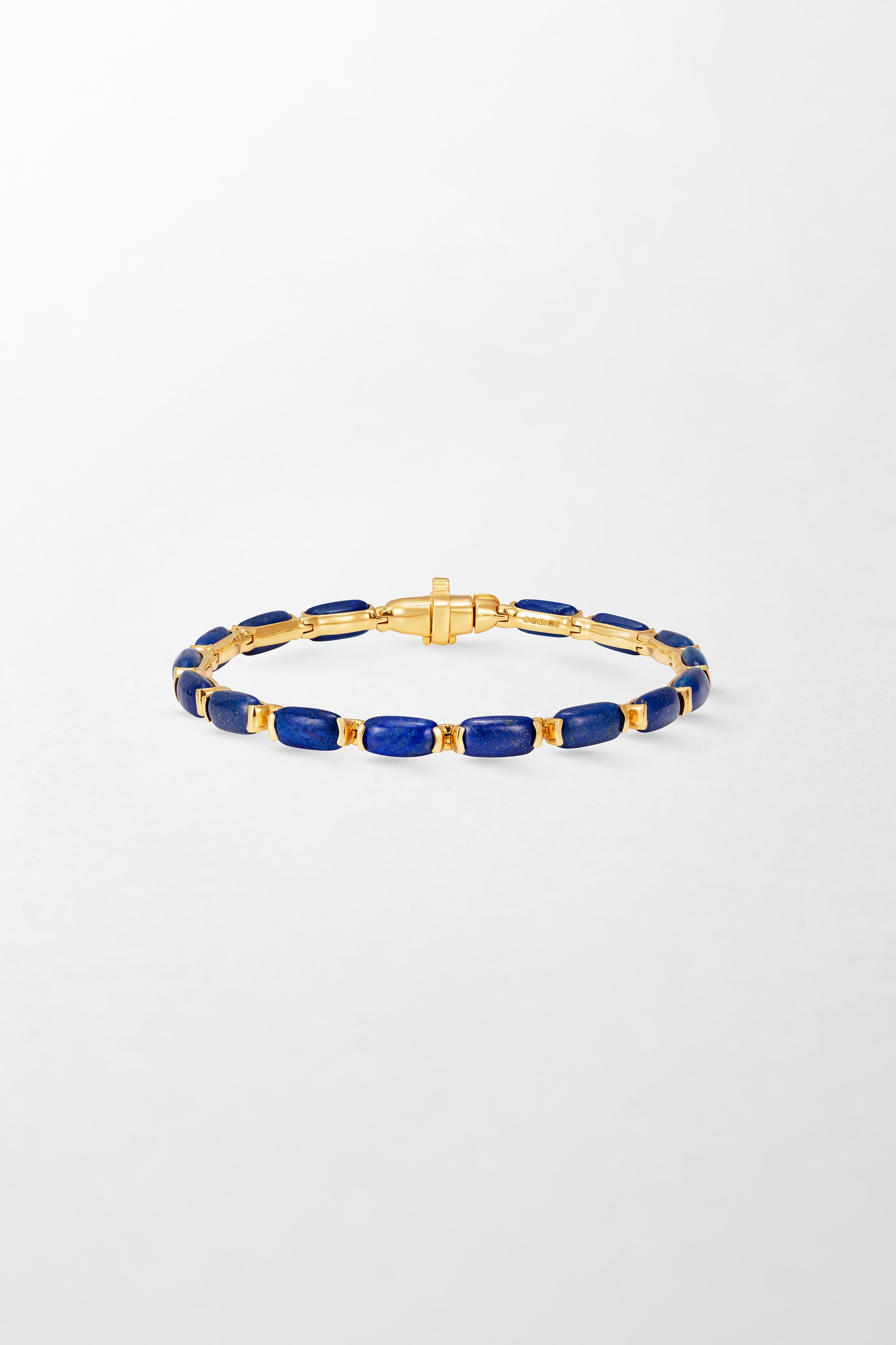 Crafted in 18k yellow gold with hand-carved lapis lazuli.