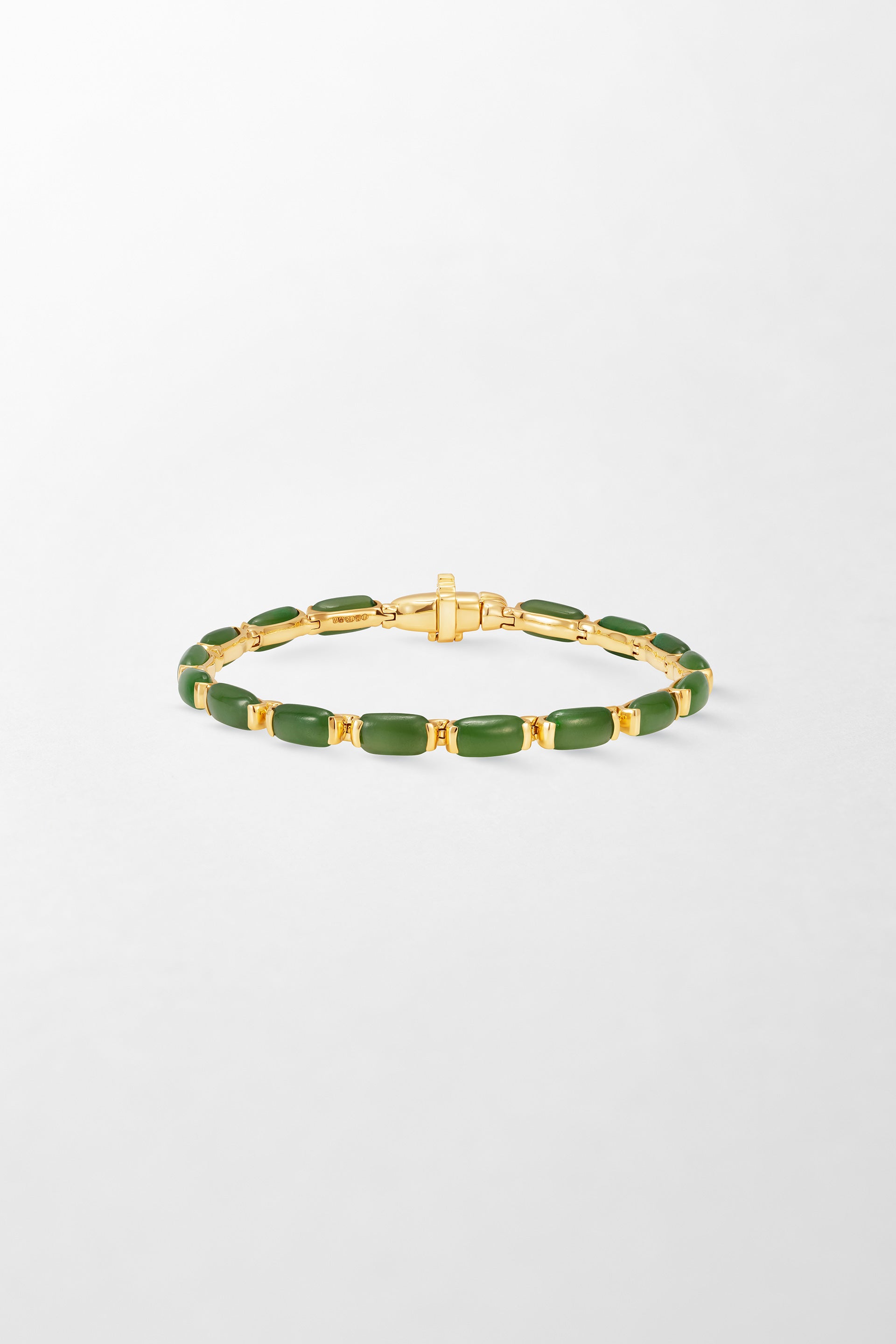 Crafted in 18k yellow gold with hand-carved nephrite jade.