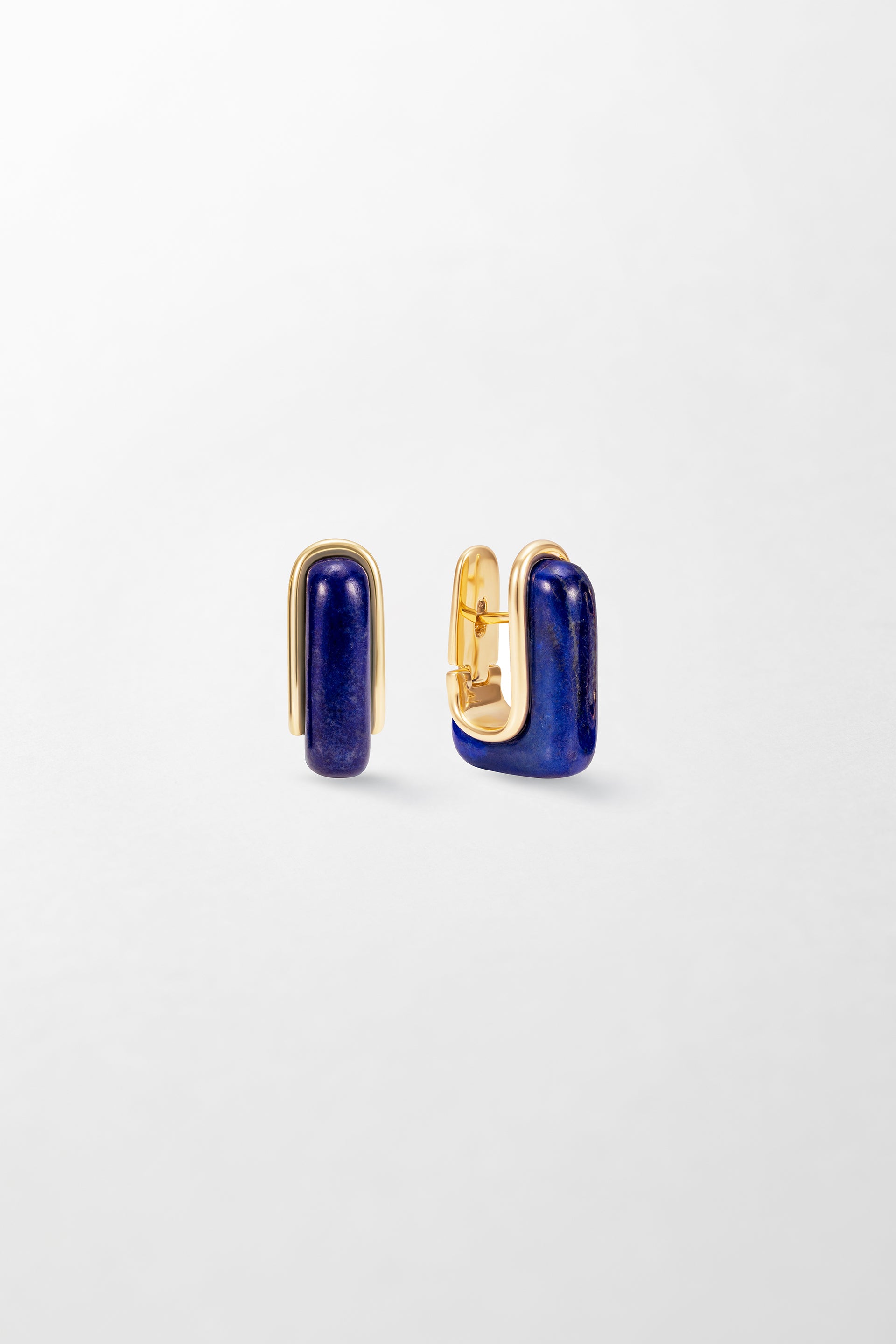 Crafted in 18k yellow gold with hand-carved lapis lazuli.