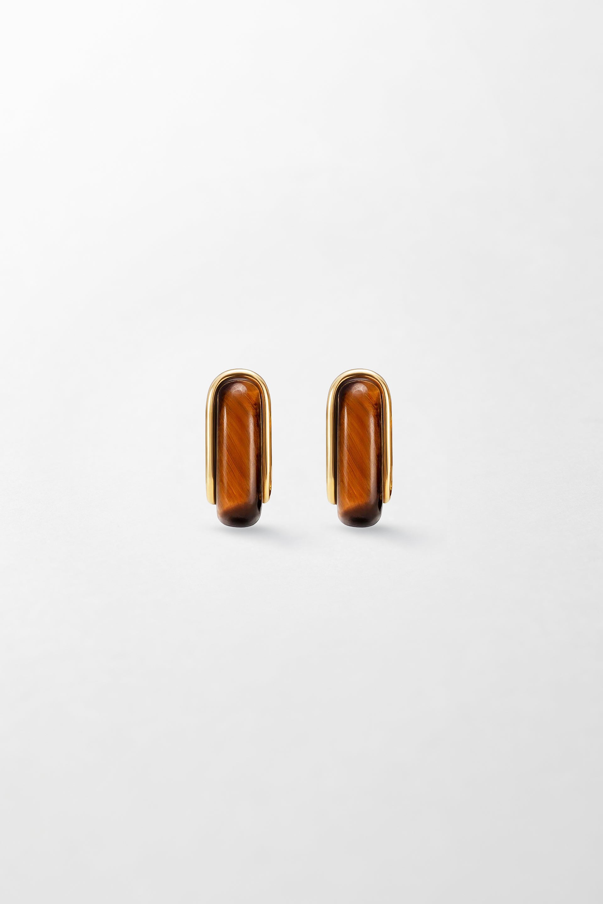 Crafted in 18k yellow gold with hand-carved tiger eye.