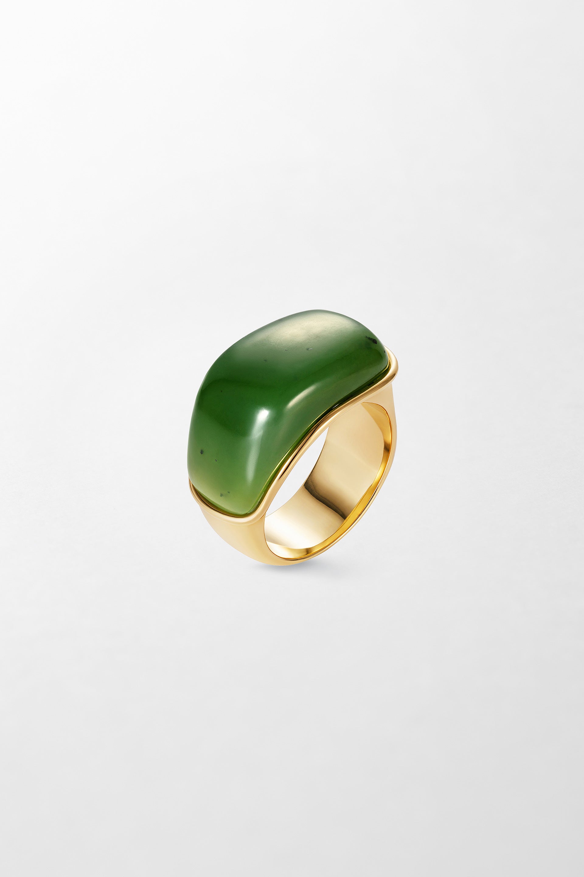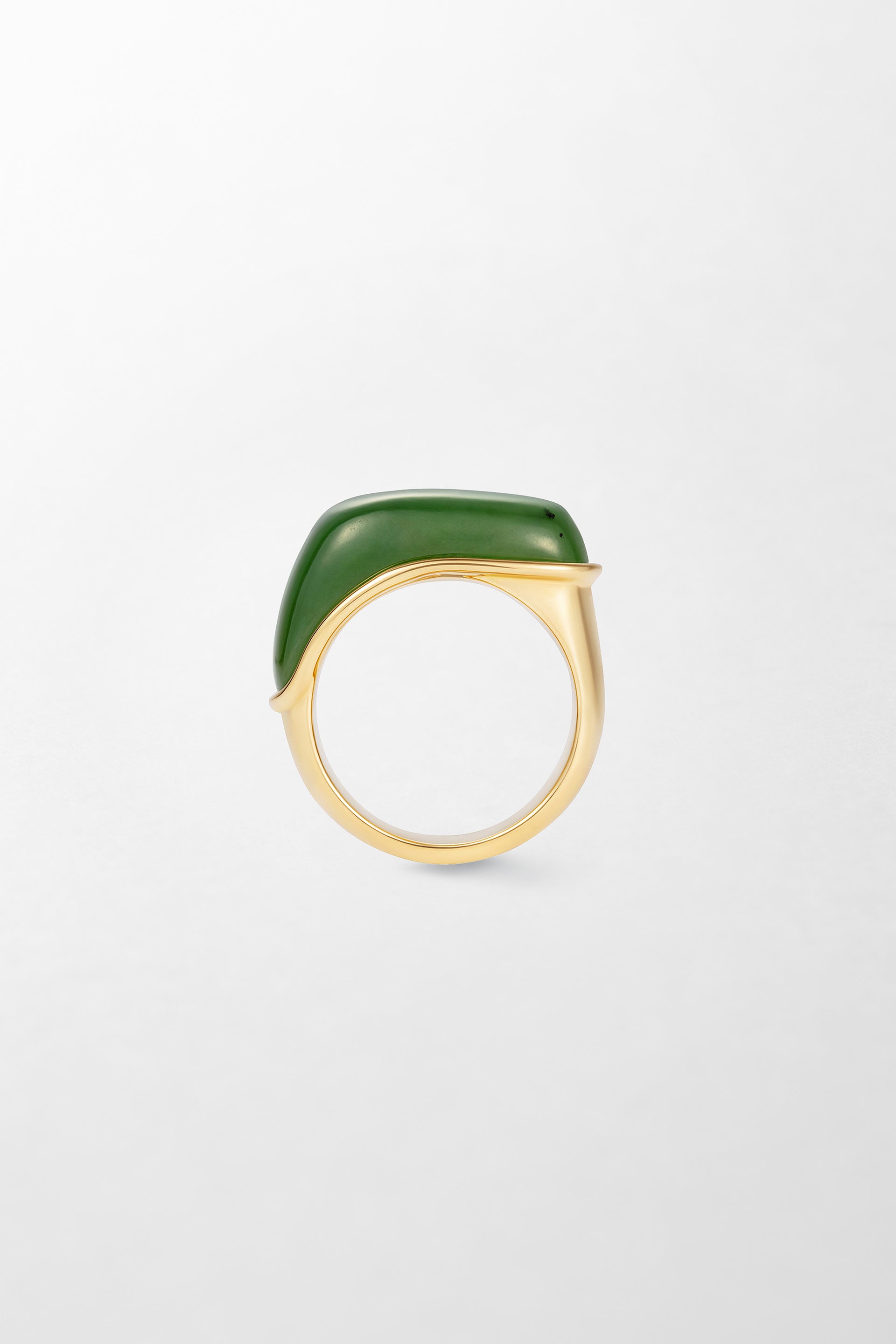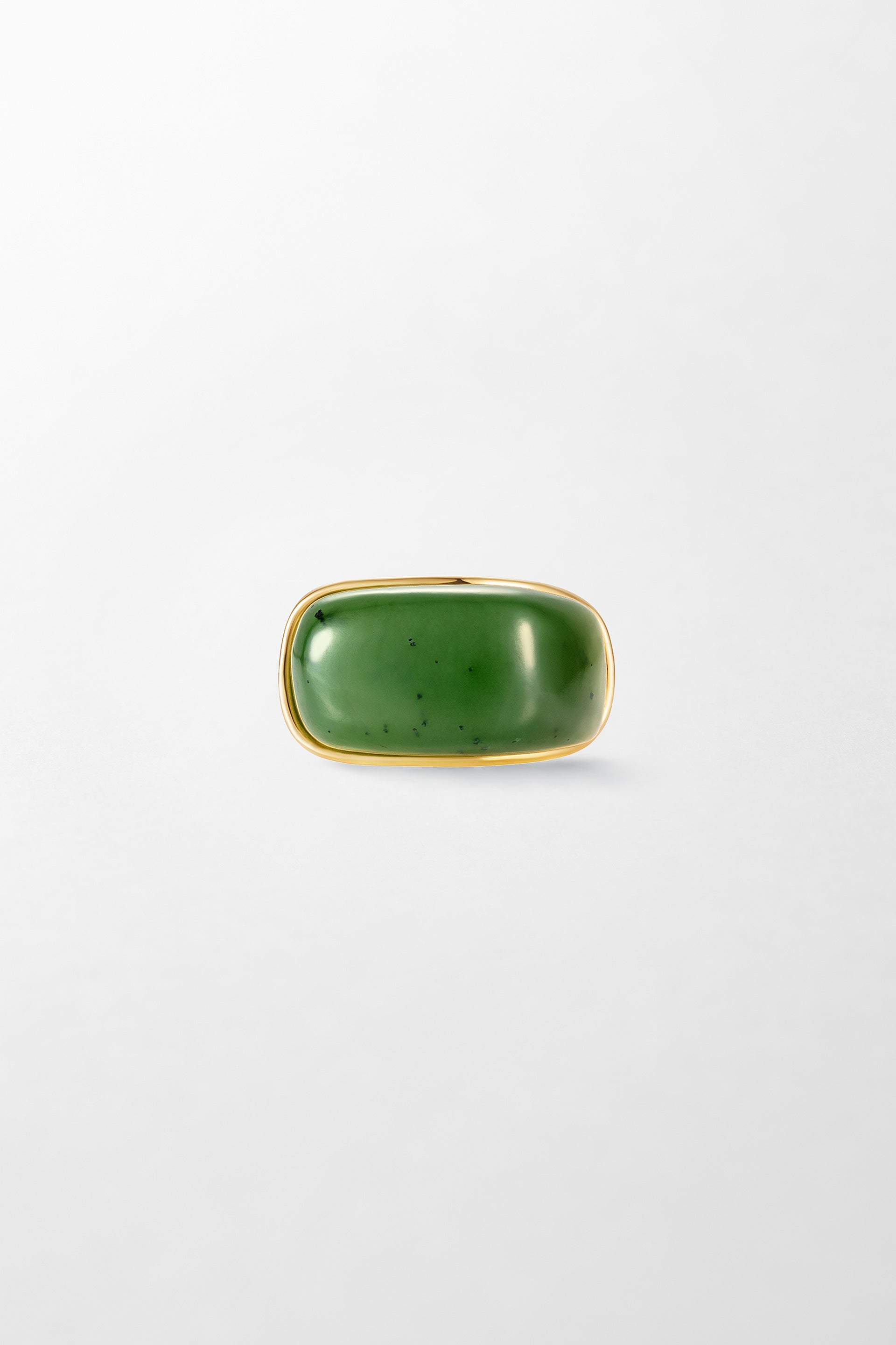 Crafted in 18k yellow gold with hand-carved nephrite jade.