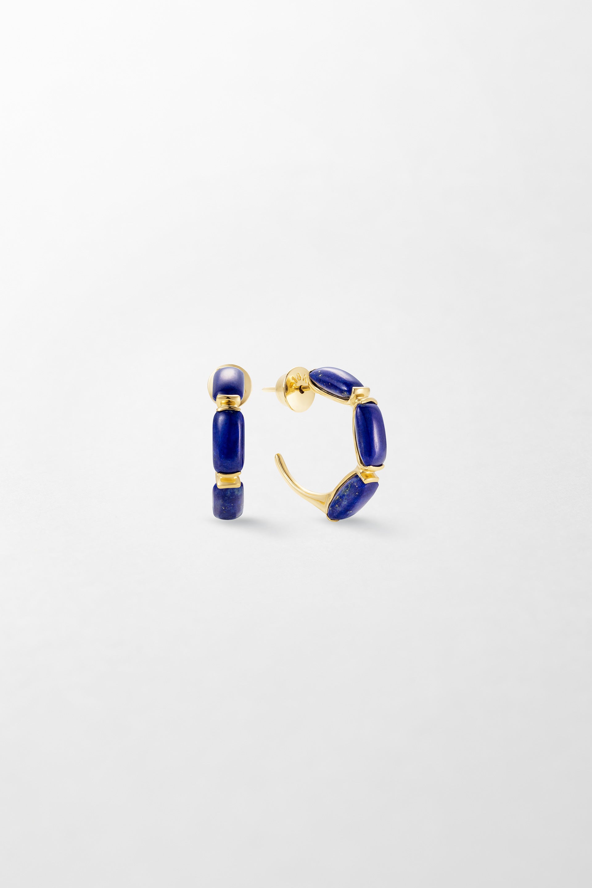 Crafted in 18k yellow gold with hand-carved lapis lazuli.