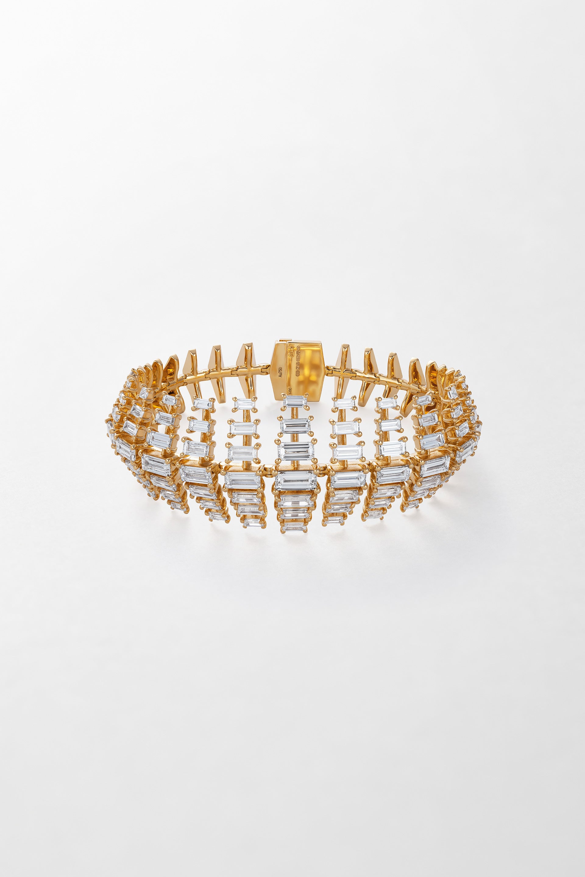 18k yellow gold bracelet set with 16.7 carats of baguette cut diamonds.