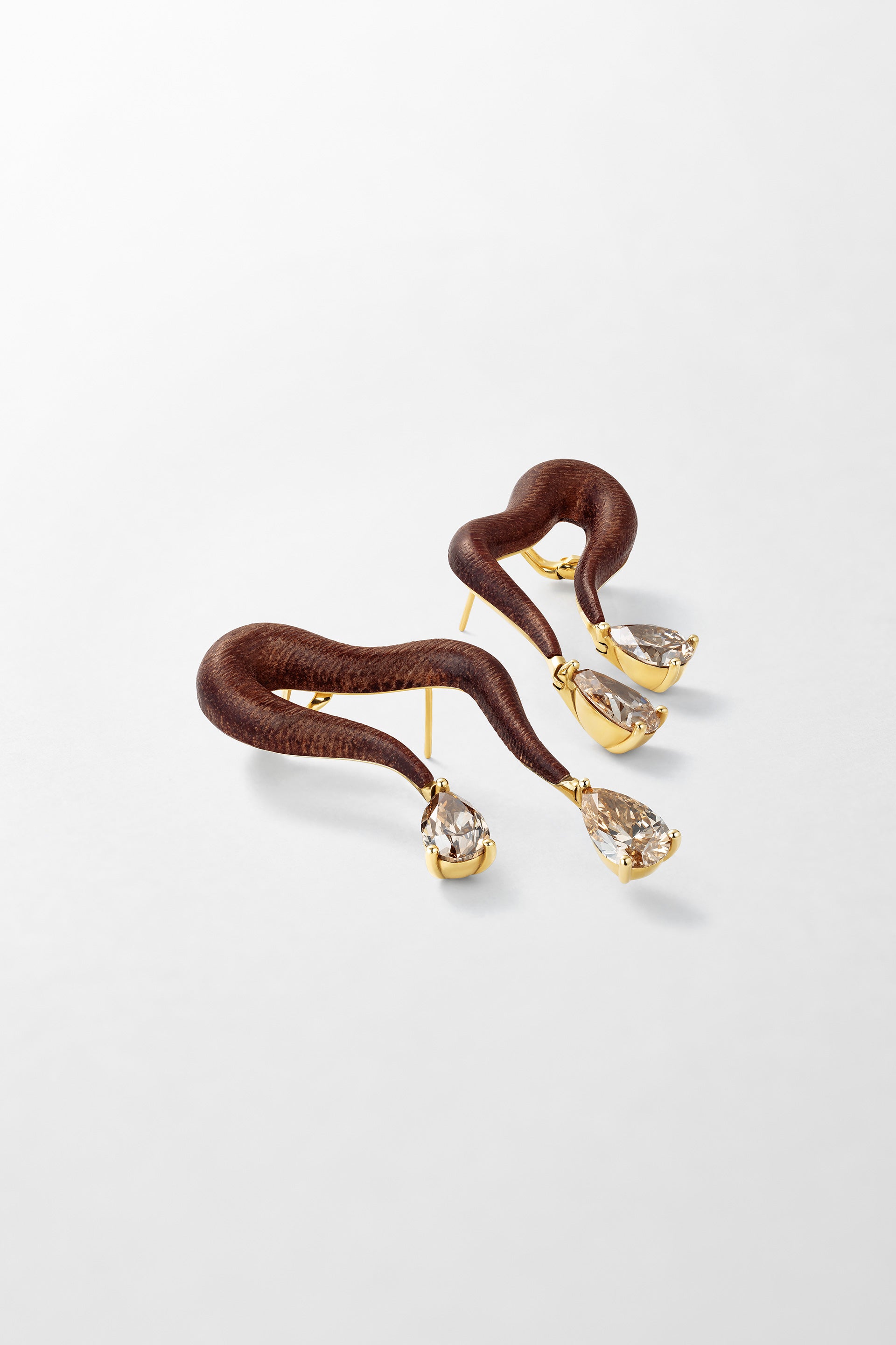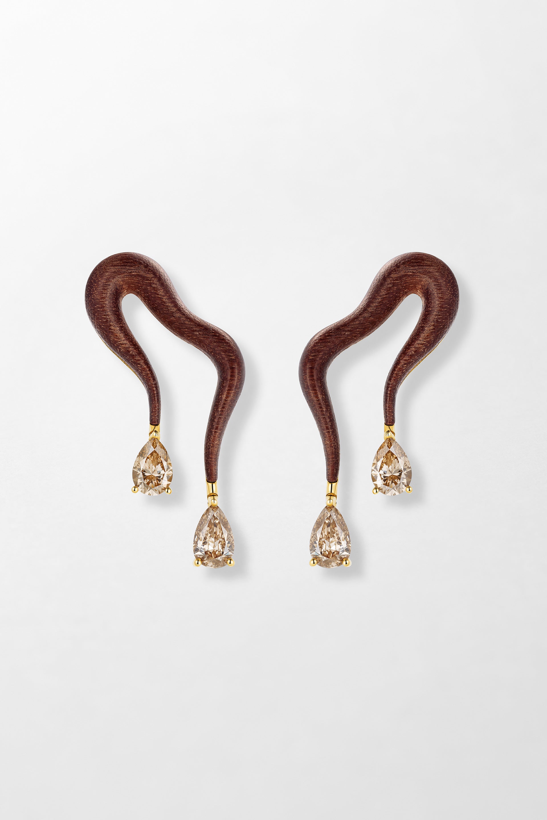 Crafted in 18k yellow gold, set with Louro Wood and 8.42 carats of pear cut brown diamonds.
