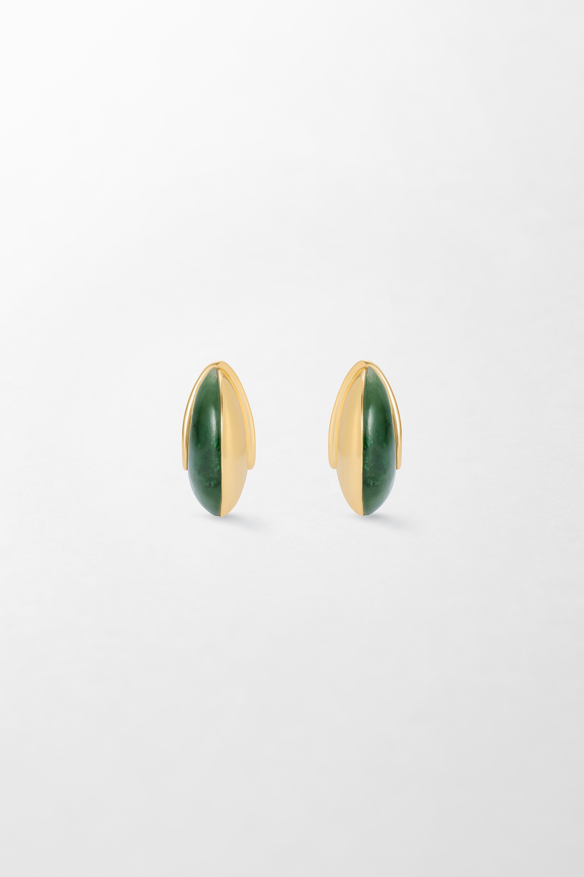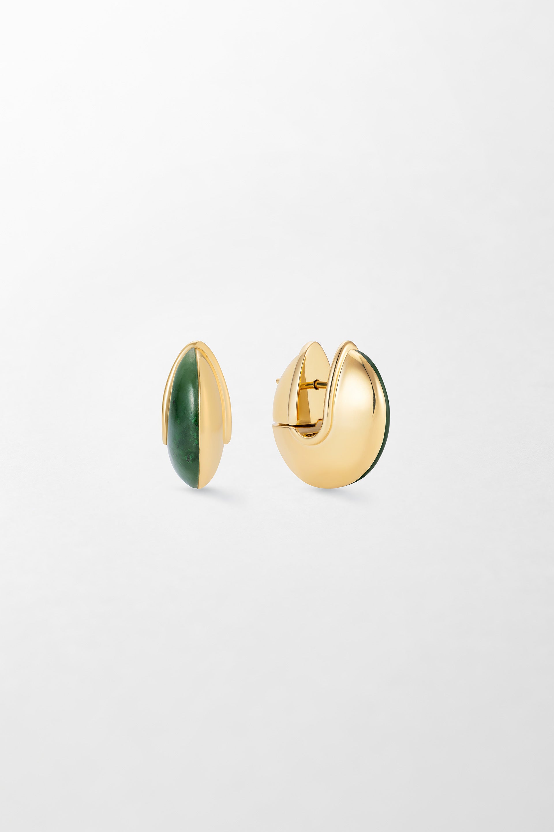 Crafted in 18k yellow gold and set with hand-carved nephrite jade.