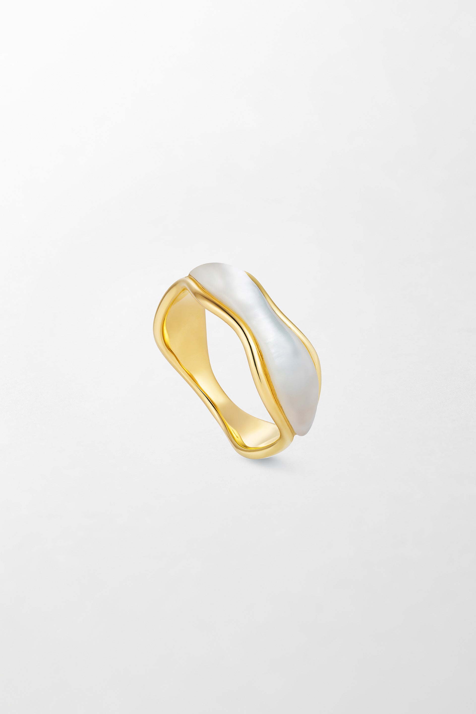 Crafted in 18k yellow gold and set with hand-carved mother of pearl.