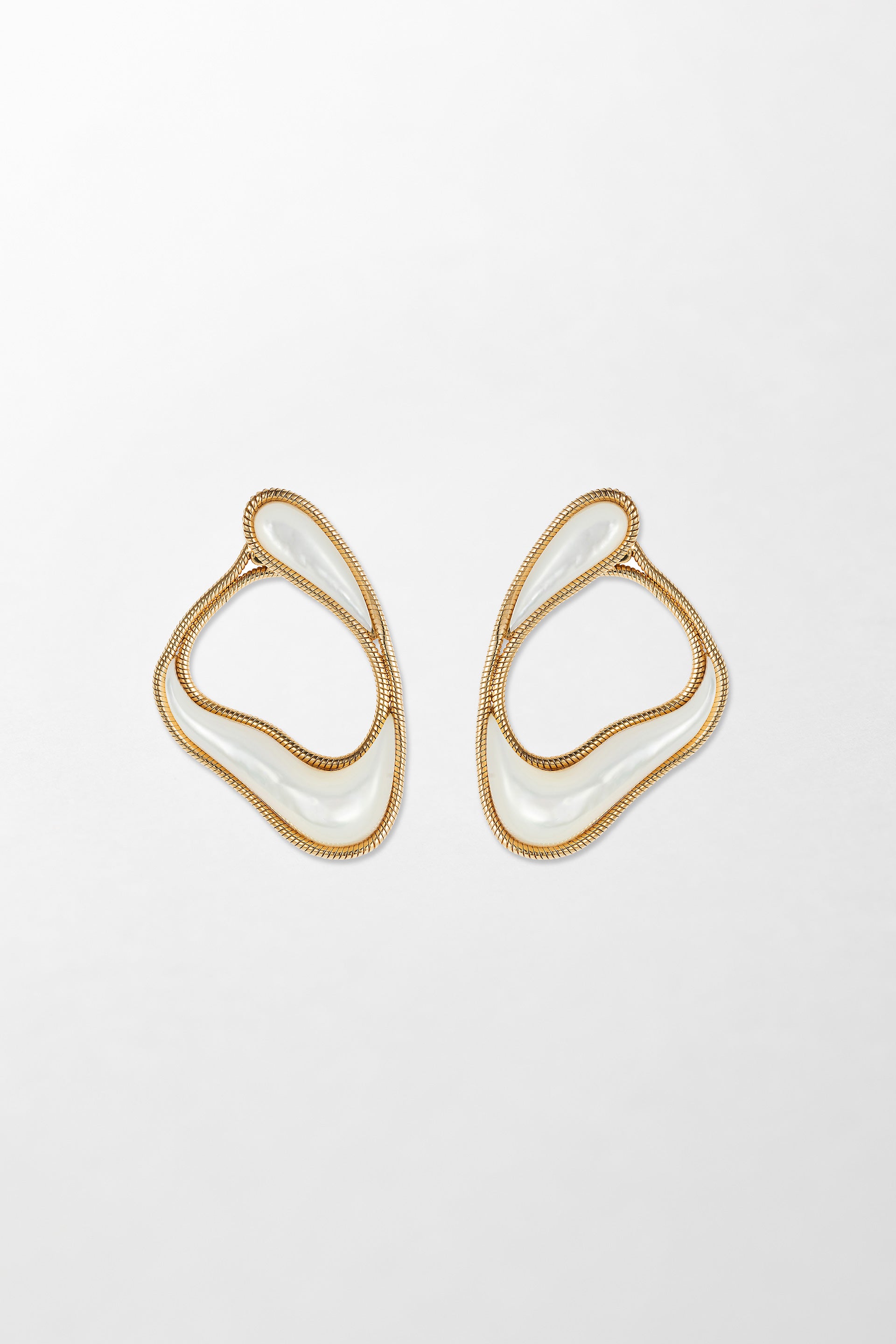 Crafted in 18k yellow gold with hand-carved mother of pearl.